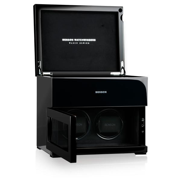 Механизм: Шкатулка с приводом (watch winders) прямоугольной формы, для хранения и поддержания в рабочем состоянии наручных часов с автоподзаводом в количестве 2 штук. Шкатулка оснащена мощным двигателем с бесшумным ходом и достаточно длительным сроком эксплуатации. Завод механизма часов осуществляет двигатель, совершающий поочерёдное вращение по часовой стрелке, против часовой стрелки и вращение в двух направлениях со скоростью 600; 900; 1200; 1500; 1800; 2100 оборотов в день. На жидкокристаллическом дисплее, созданном по эксклюзивной технологии, отражена функция контроля работы двигателя. Энергия для двигателя и жидкокристаллического дисплея поступает от сети переменного тока через входящий в комплект адаптер.