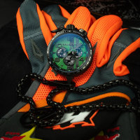 Функции: Центральные часовая и минутная стрелки. Часы-трансформер с хронографом и тахиметром. Кнопка хронографа оснащена «спусковым крючком». Дата.