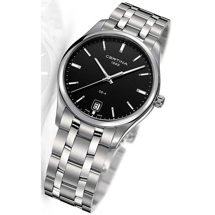 Корпус: Корпус из нержавеющей полированной/матовой стали. Чёрный циферблат. Стрелки и часовые индексы серебристого цвета с люминесцентным покрытием. Сапфировое стекло. Диаметр 40 мм. Водостойкость 100 м. Система DS.