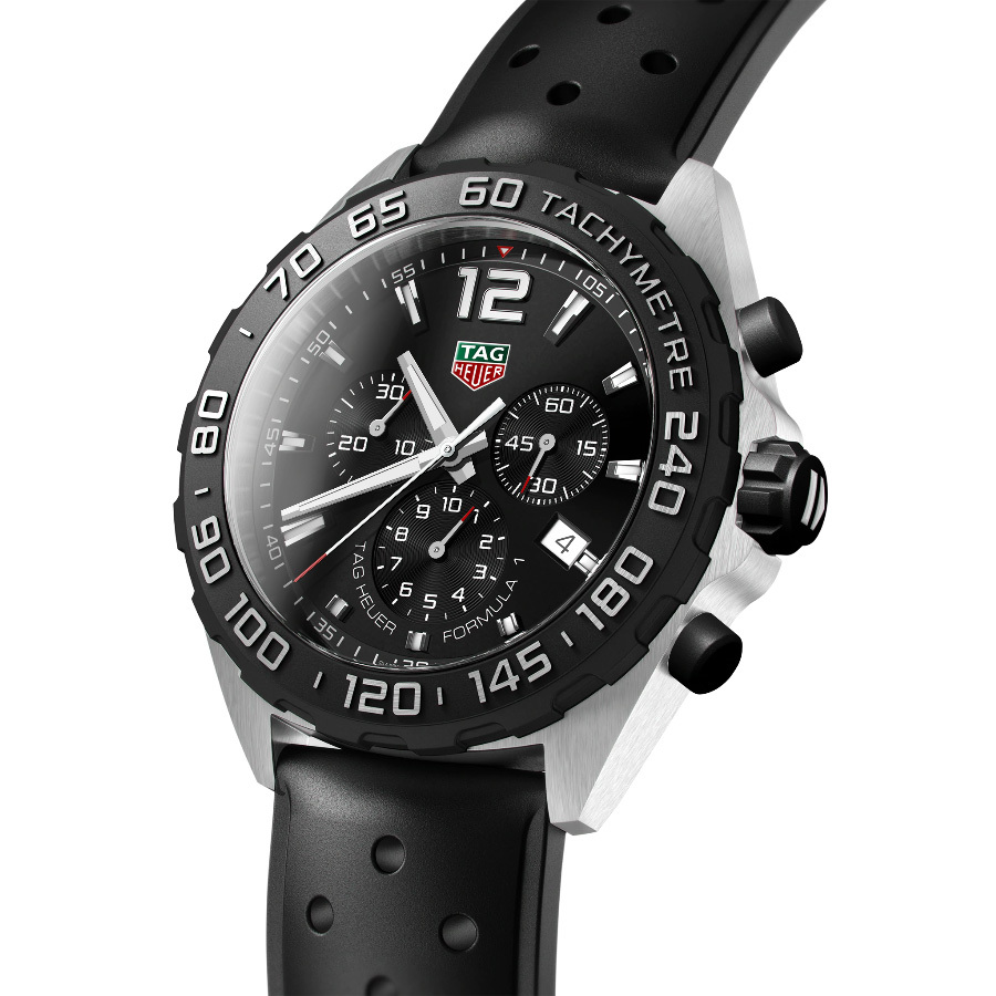 Ремешок: Каучуковый ремешок черного цвета с перфорированием, классическая застежка пряжка из нерж. стали украшена логотипом TAG Heuer.