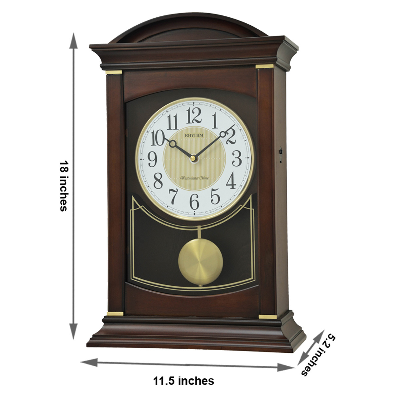 Механизм: Японский кварцевый механизм RHYTHM, воспроизводит часовой и квартальный бой вестминстерских курантов, 21 мелодию и 3 рождественские мелодии. Кнопка демонстрации. Регулятор громкости. Включение, выключение, ночное отключение.