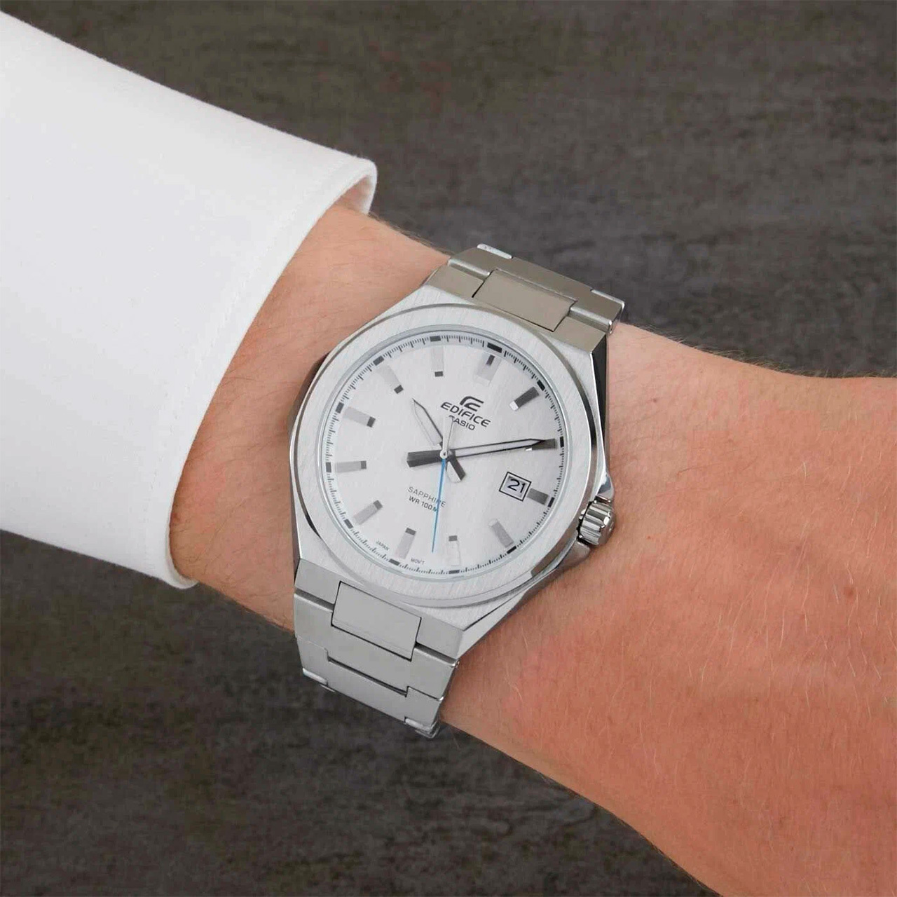 Корпус: Прочный круглый корпус из нержавеющей стали с восьмиугольным безелем. Металлик циферблат с метками в виде штрихов. Необритовое светонакопительное покрытие на стрелках и часовых индексах обеспечивает длительное послесвечение в темноте даже после кратковременного нахождения на свету. Сапфировое стекло с антибликовым покрытием. Заводная головка с защитой. Задняя крышка с винтовым фиксатором. Габаритные размеры: (Д x Ш x В) 47,5 × 45 × 8,7 мм. Водонепроницаемость (10 Бар).