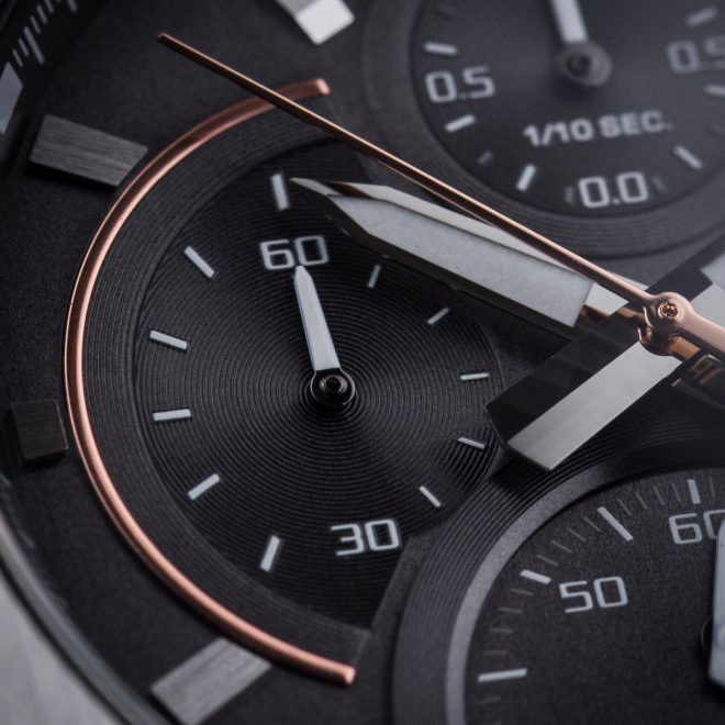 Функции: Центральные часовая и минутная стрелки. Дата. Хронограф.