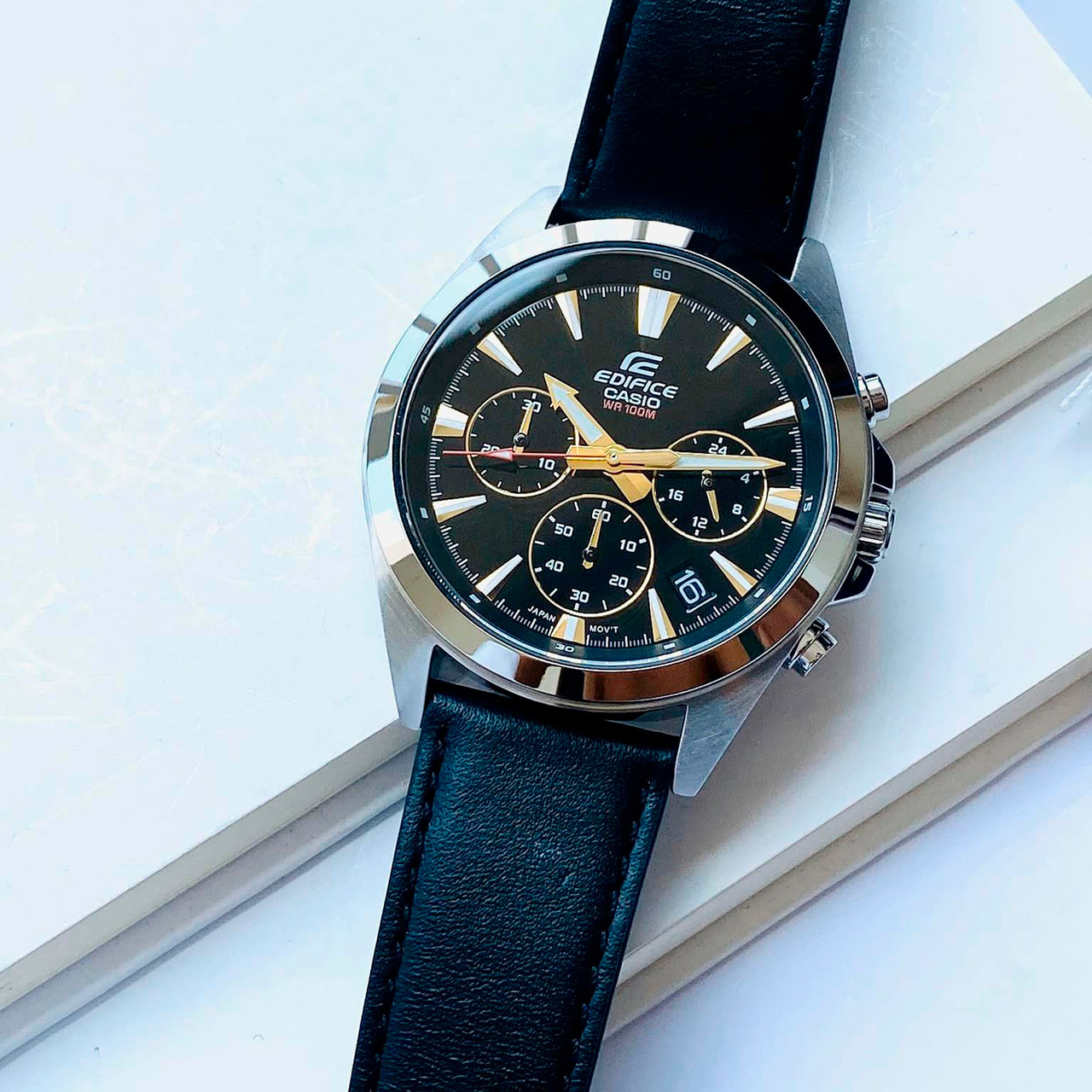 Ремешок: Кожаный ремешок чёрного цвета, классическая застежка.