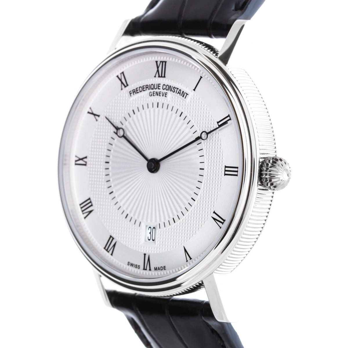 Корпус: Корпус из нержавеющей полированной/матовой стали. Циферблат серебристого цвета и искусно гильошированный узором. Стрелки часов и индексы чёрного цвета. Сапфировое стекло. Диаметр 39 мм. Водозащита 60 м.
