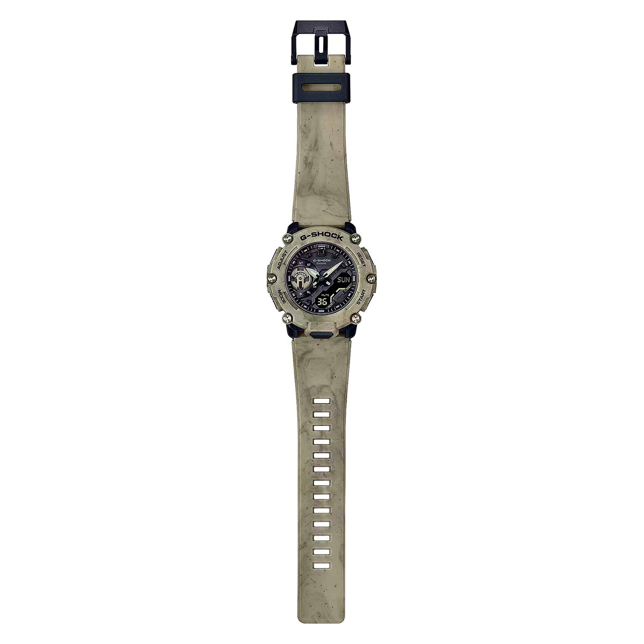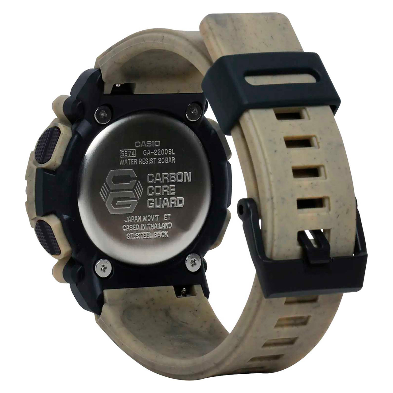 Корпус: Новая серия часов со структурой Carbon Core Guard. Корпус выполнен из высокопрочного мелкодисперсного полимерного материала содержащего углеродное волокно, более прочный и, в то же время, более легкий. Чёрный циферблат. Метки и стрелки со светонакопительным покрытием Neobrite. Двойная подсветка Super illuminator с функцией Afterglow (для подсветки не нужно удерживать кнопку, время послесвечения настраивается 1,5 или 3 сек): одновременно подсвечивается аналоговый циферблат и цифровой дисплей. Размер корпуса (Д × Ш × В) 50,8 × 47,1 × 13,1 мм. Водонепроницаемость 200 метров.