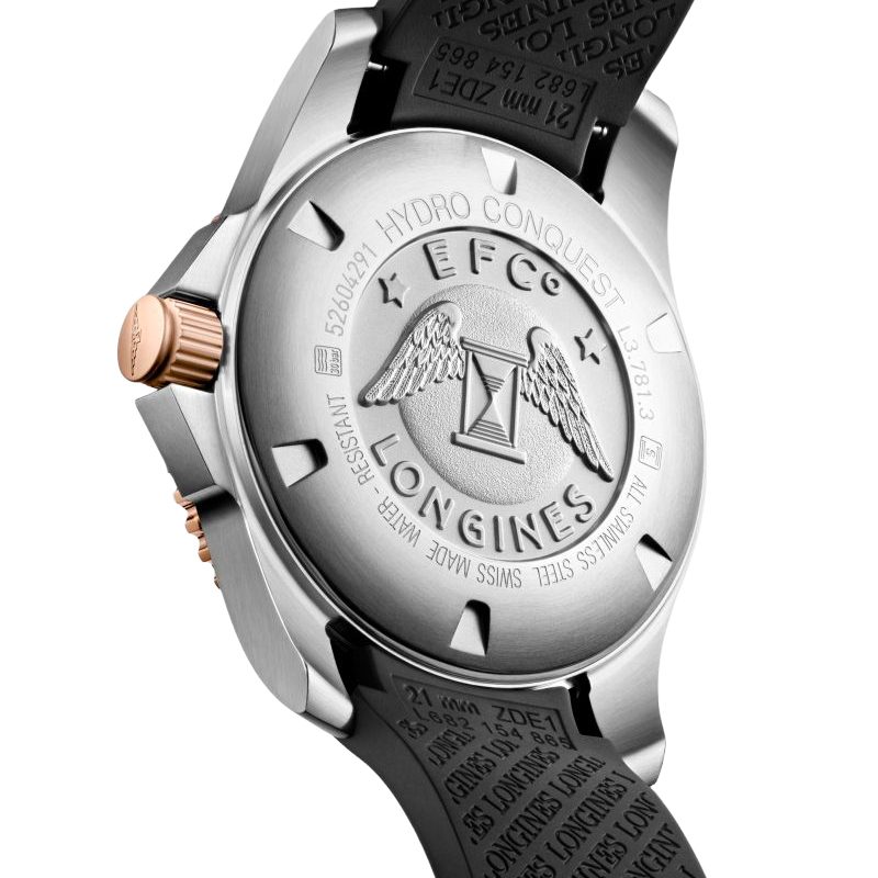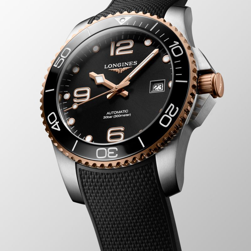 Корпус: Корпус из нержавеющей стали. Черный циферблат. Сапфировое стекло с антибликовым покрытием. Светонакопитель на индексах и стрелках. Завинчивающиеся задняя крышка и заводная головка. Однонаправленно вращающийся безель из черной керамики и стали с PVD-покрытием из розового золота. Диаметр 41 мм. Водозащита 300 м.