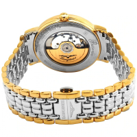 Корпус: Нержавеющая сталь и желтое PVD-покрытие, сапфировое стекло. Размер 40 мм, водонепроницаемость 30 метров. Циферблат белый матовый с римскими цифрами обеспечивает отличную читаемость. Прозрачная задняя крышка с сапфировым стеклом.