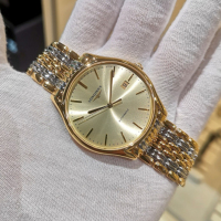 Корпус: Нержавеющая сталь марки 316L с PVD покрытием цвета желтого золота. Позолоченный циферблат с золотистыми часовыми индексами и стрелками. Сапфировое стекло с антибликовым покрытием. Водонепроницаемость 30 метров. Диаметр 38,5 мм.