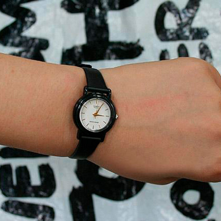 Корпус: Ударопрочный корпус часов чёрного цвета из полимерного материала защищает механизм от ударов и вибрации. Пластиковое стекло. Водонепроницаемость: 30 м. Размер корпуса: 25 × 25 × 7 мм.