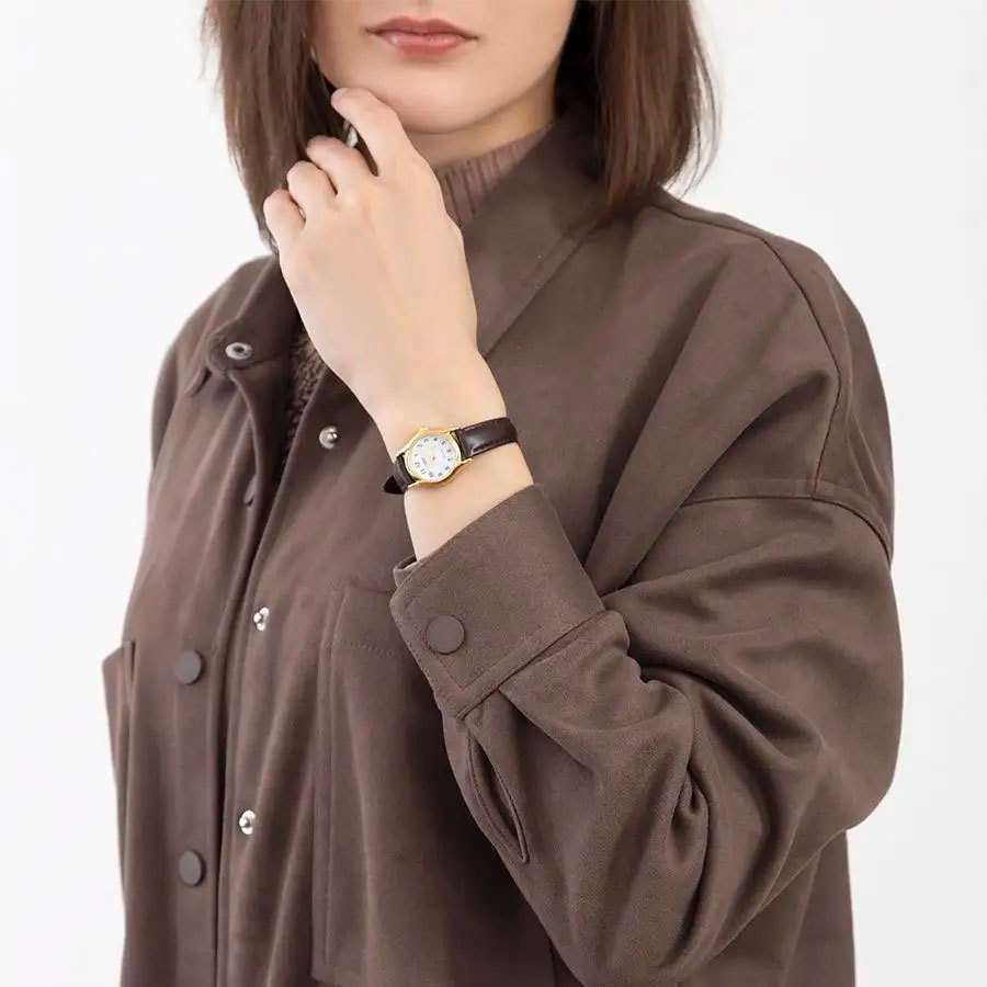Ремешок: Удобный кожаный ремешок коричневого цвета с классической застежкой.