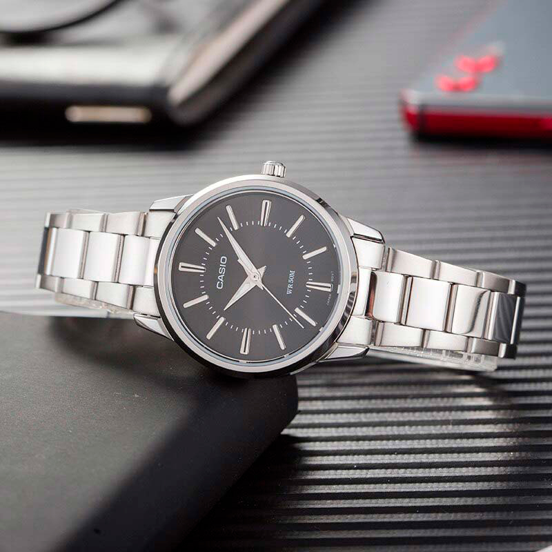Корпус: Корпус часов выполнен из гипоаллергенной латуни с хромированным покрытием. Циферблат чёрного цвета. Метки в виде штрихов и стрелки выполнены из полированной стали. Необритовое светонакопительное покрытие, нанесенное на стрелки, обеспечивает длительное послесвечение в темноте даже после кратковременного нахождения на свету. Минеральное стекло защищает циферблат от повреждений. Габаритные размеры: 30x35,5мм, толщина 7,5мм, вес 65г. Водозащита: 5 ATM.