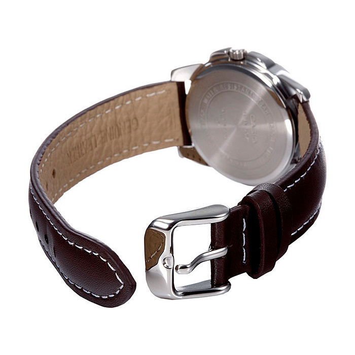 Ремешок: Кожаный ремешок с контрастной прострочкой, стандартная застежка.