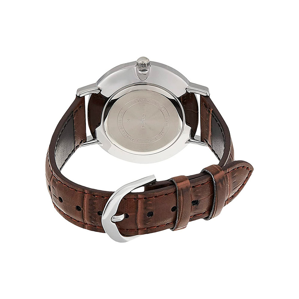 Ремешок: Кожаный ремешок коричневого цвета, стандартная застежка.