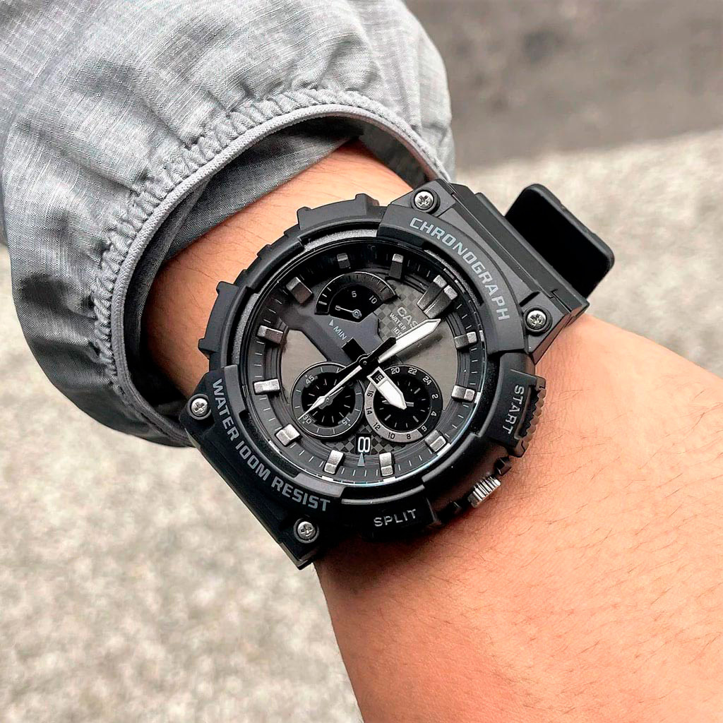 Корпус: Корпус из высококачественной полимерного материала – прочного и долговечного, с малым весом, чёрного цвета. Циферблат с объемной структурой крупными накладными метками. Необритовое светонакопительное покрытие обеспечивает длительное послесвечение в темноте даже после кратковременного нахождения на свету. Выступы корпуса служат защитой для переводной коронки. Задняя крышка из нерж. стали имеет винтовое соединение с корпусом. Габаритные размеры: