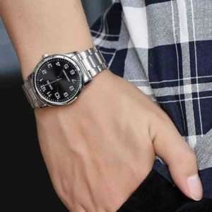 Корпус: Корпус часов выполнен из гипоаллергенной латуни с хромированным покрытием. Циферблат чёрного цвета дополнен серебристыми индексами в виде арабских цифр и стрелками, что придает часам универсальность и элегантность. Рифленая заводная головка. Надежное минеральное стекло. Диаметр корпуса составляет 38 мм. Водостойкость WR 30.