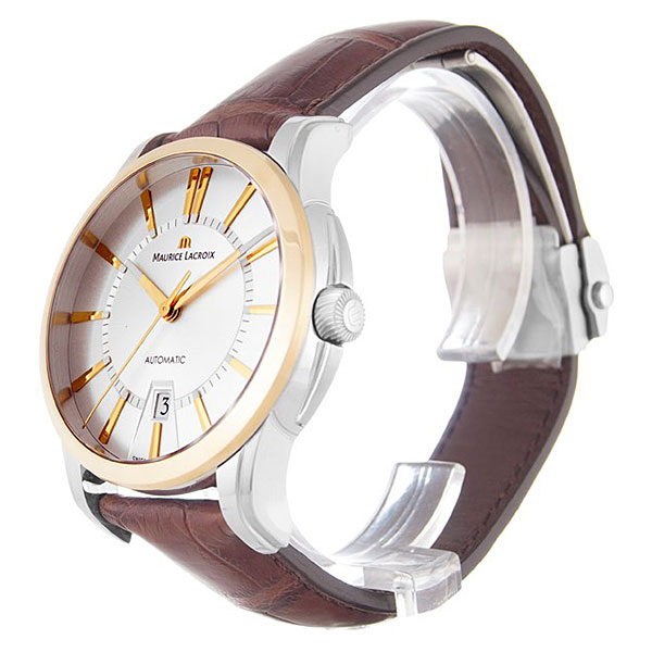 Браслет: Коричневый ремень из кожи аллигатора с раскладывающейся застёжкой.