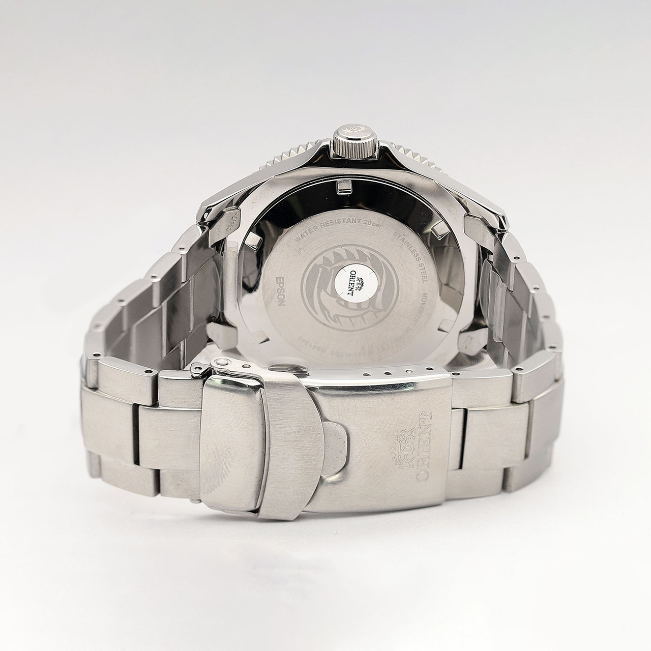 Корпус: Корпус этих часов выполнен из нержавеющей стали. Минеральное стекло. Чёрный циферблат. Рифленый вращающийся безель с минутной шкалой. Широкие мечевидные стрелки в стиле Sword. Метки и стрелки с люминесцентным покрытием, которое светится в темноте после непродолжительной зарядки на свету.Водоустойчивость: 200 метров. Диаметр 44 мм.