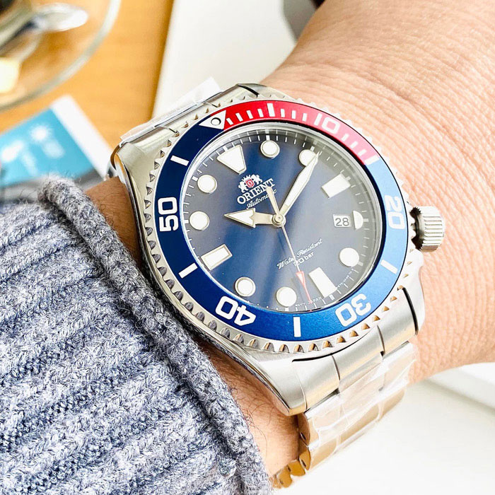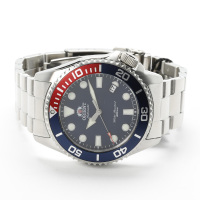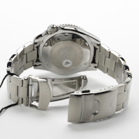 Корпус: Нержавеющая сталь. Синий циферблат. Рифленый вращающийся безель с минутной шкалой. Рифленая заводная головка с защитой. Метки в виде штрихов и точек. Метки и стрелки с люминесцентным покрытием, которое светится в темноте после непродолжительной зарядки на свету. Сапфировое стекло. Завинчивающаяся задняя крышка. Водоустойчивость: 200 метров. Диаметр 43 мм.