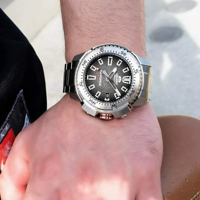 Корпус: Корпус из высококачественного стального сплава с высокими антикоррозийными свойствами. Вращающийся безель со шкалой компаса. Циферблат чёрного цвета. Характерные формы индексов вдохновлены протекторами внедорожных шин, блоками и трафаретами. Кончики стрелок и вдавленные указатели имеют высокоинтенсивный световой индикатор, который заряжает светом, обеспечивая отличную видимость в темное время суток. Сапфировое стекло устойчивое к царапинам. Завинчивающаяся заводная головка и задняя крышка для более уверенной водонепроницаемости часов. Заводная головка с защитой. Диаметр корпуса: 45 мм. Толщина: 12 мм. Водонепроницаемость: 200 м.