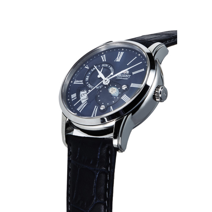 Функции: Центральные часовая, минутная и секундная стрелки. Индикация даты и дня недели. Индикатор день/ночь.