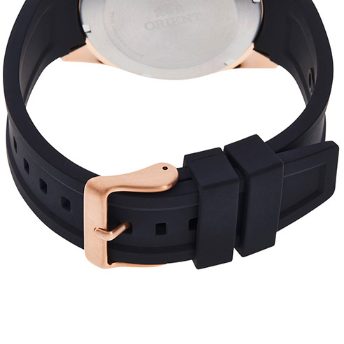 Корпус: Круглый корпус выполнен из полированной нержавеющей стали с IP покрытием цвета розового золота. Черный циферблат. Прочное минеральное стекло устойчивое к мелким механическим повреждениям. Заводная головка с защитой. Завинчивающаяся задняя крышка. Водозащита 100 метров. Диаметр 42 мм.