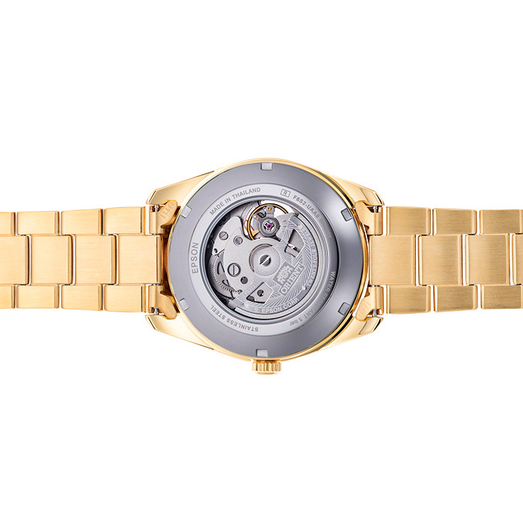 Корпус: Нержавеющая сталь с PVD покрытием цвета жёлтого золота. Сапфировое стекло устойчивое к царапинам. Светлый циферблат двухслойный, что придает ему объемный вид и привлекает внимание к движению часовой и минутной стрелок. Прозрачная винтовая задняя крышка. Стрелки и метки покрыты люминесцентным напылением что обеспечивает подсветку в темное время суток. Водозащита - 50 метров. Диаметр 41 мм.