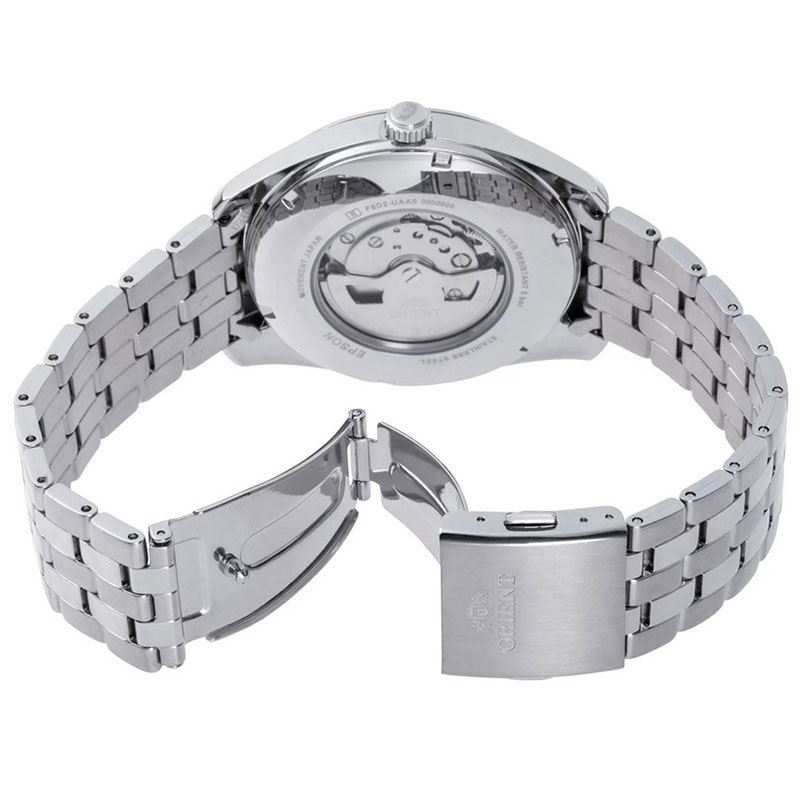 Корпус: Корпус этих часов выполнен из нержавеющей стали. Минеральное стекло. Синий циферблат. Прозрачная задняя крышка. Водоустойчивость: 100 метров. Диаметр 44 мм.