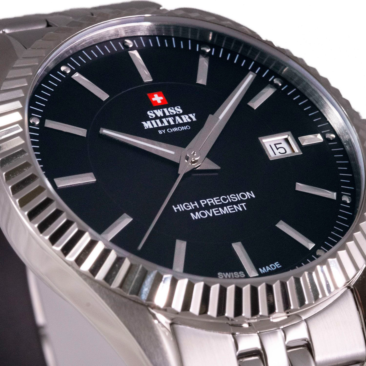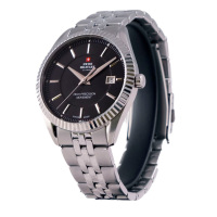 Корпус: Корпус выполнен из нержавеющей стали. Чёрный циферблат. Стрелки и часовые индексы из полированного металла. Минеральное стекло с сапфировым покрытием. Водонепроницаемость 50 метров. Диаметр 40 мм.