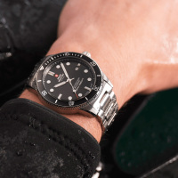 Корпус: Корпус выполнен из нержавеющей стали. Чёрный циферблат. Вращающийся безель. Стрелки и часовые индексы с люминесцентным покрытием. Минеральное стекло с сапфировым покрытием. Водонепроницаемость 200 метров. Диаметр 42 мм.