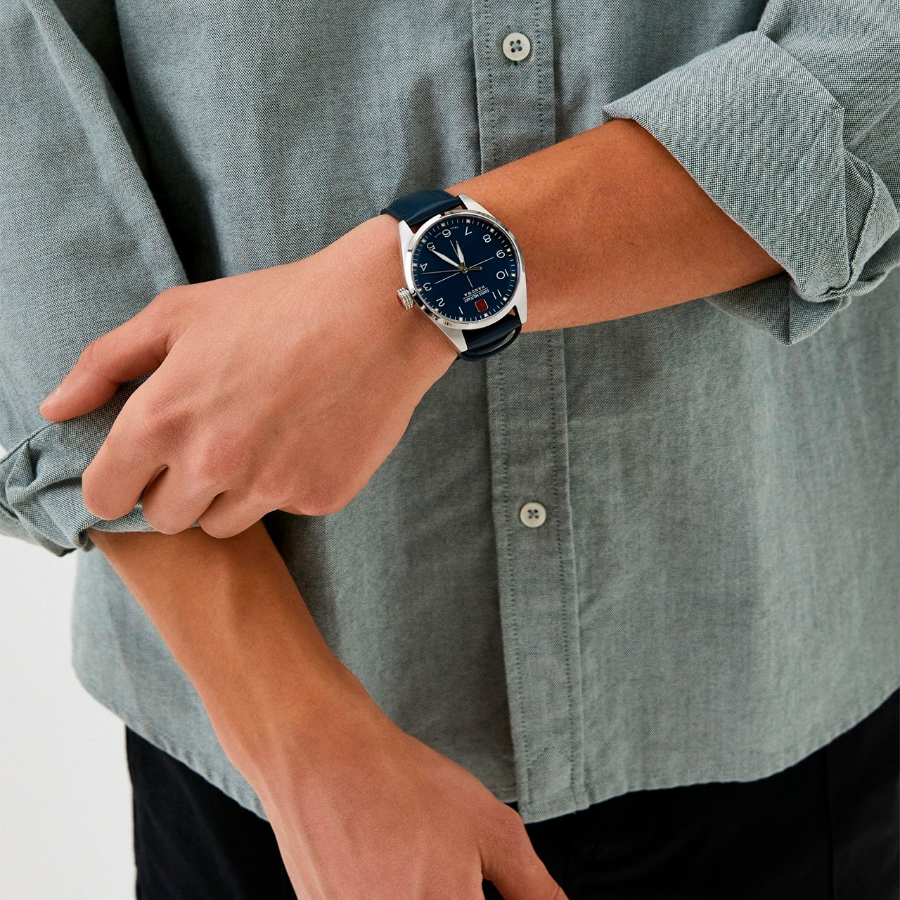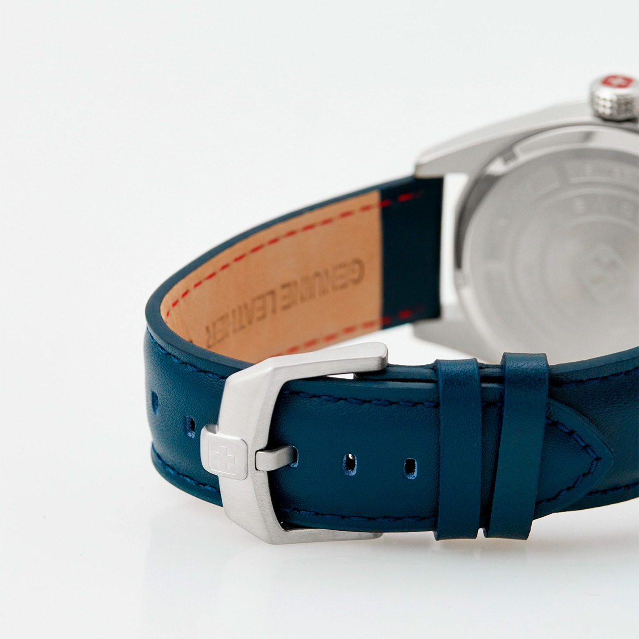 Ремешок: Ремешок из натуральной кожи синего цвета с классической застежкой.