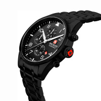 Корпус: Корпус выполнен из нержавеющей стали 316L с PVD покрытием. Циферблат выполнен по технологии Sunray (солнечные лучи) чёрного цвета. Метки выполнены в виде арабских цифр и штрихов. Люминесцентное покрытие на часовой и минутной стрелках позволяет считывать показания в темноте. Сапфировое стекло устойчивое к появлению царапин, обладающее высокой прозрачностью. Рифленая заводная головка украшена фирменным логотипом. Диаметр 43 мм. Водонепроницаемость 100 м.