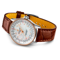 Ремешок: Ремешок коричневого цвета из кожи аллигатора, ширина 18/16 мм. Браслетная застежка, раскладывающаяся при нажатии кнопок двойной блокировки, украшена эмблемой марки.