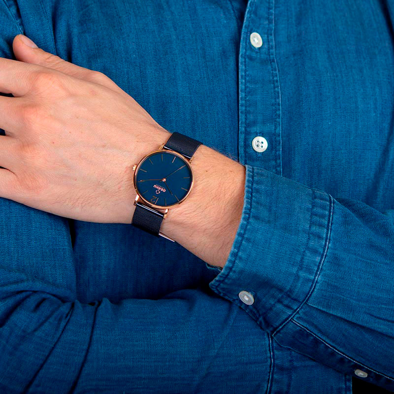 Ремешок: Миланский браслет из нержавеющей стали с IP покрытием синего цвета.