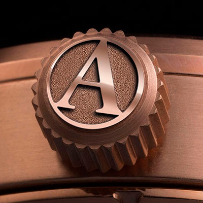 Корпус: Нержавеющая сталь с розовым PVD - покрытием. Циферблат коричневый, стрелки и часовые индексы с люминесцентным покрытием. Диаметр 42 мм. Сапфировое стекло с антибликовым покрытием. Задняя крышка имеет резьбовое соединение с корпусом. Переводная коронка с двойным уплотнителем и винтовой фиксацией для дополнительной защиты от попадания воды. Водозащита 100 метров.