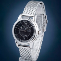 Функции: Центральные часовая, минутная и секундная стрелки, индикация даты в апертуре на отметке “6 часов”, отображение лунных фаз.