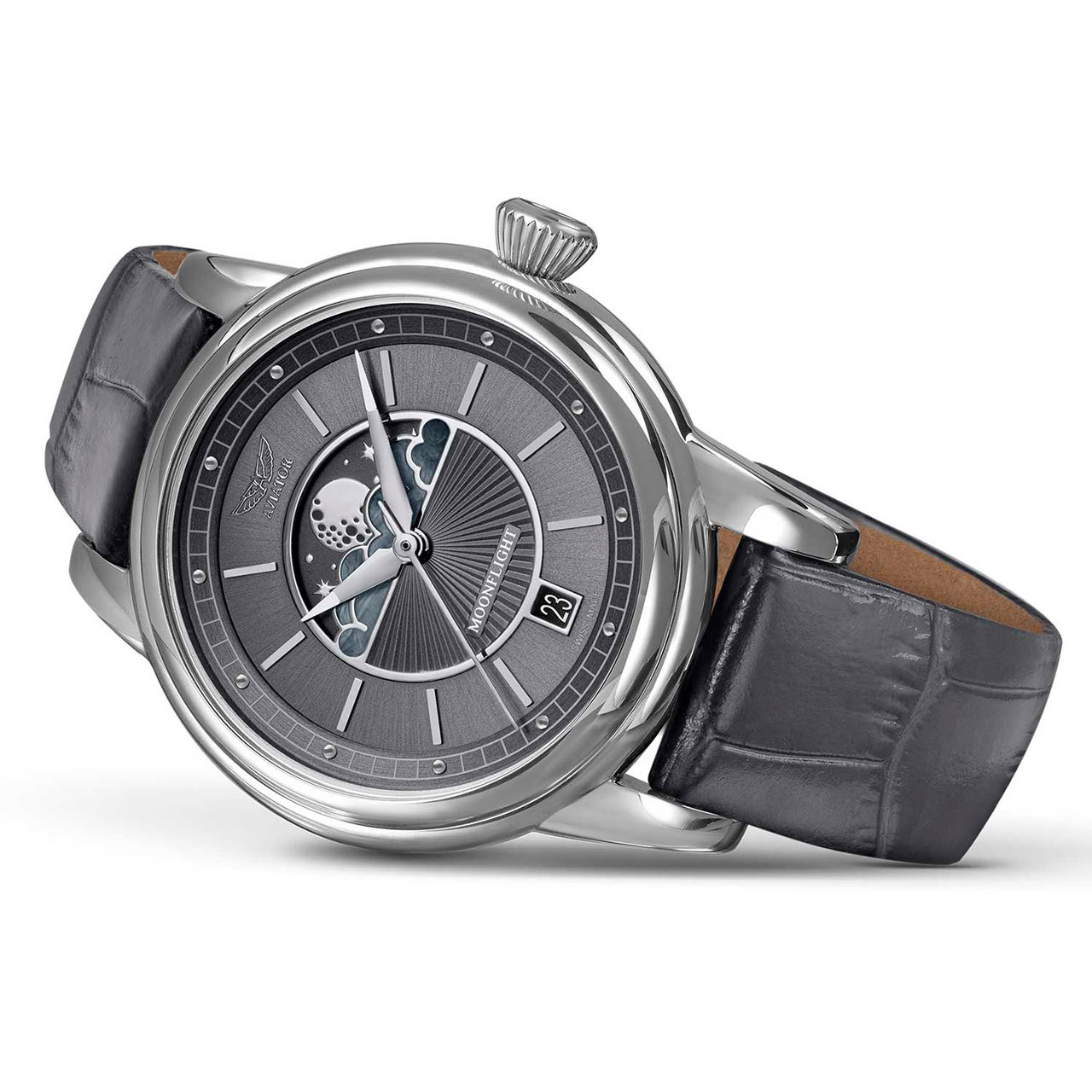 Функции: Индикация часов, минут и секунд при помощи центральных стрелок. Дата. Фазы Луны.