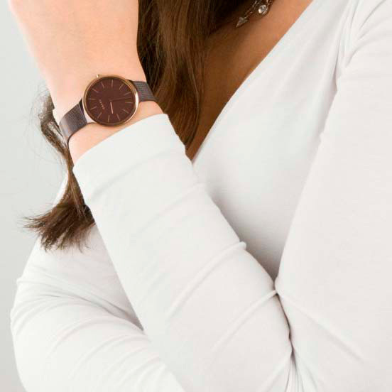 Ремешок: Стальной браслет с коричневым покрытием выполнен в технике миланского плетения, раскладная застежка.