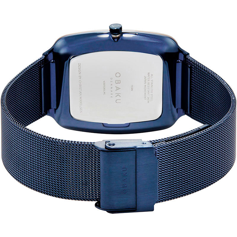Ремешок: Стальной браслет с синим покрытием выполнен в технике миланского плетения, раскладная застежка.