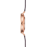 Корпус: Корпус выполнен из стали с IP покрытием. Минеральное стекло повышенной прочности. Коричневого цвета циферблат с золотистыми стрелками, украшен 4 кристаллами, расположенными в местах часовых меток. Диаметр: 37 мм. Водонепроницаемость: 30 метров.