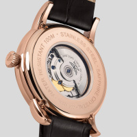 Ремешок: Коричневый ремешок из телячьей кожи с тиснением под аллигатора, контрастная прошивка. Браслетная застежка из нержавеющей стали с PVD покрытием, раскладывающаяся при нажатии кнопок двойной блокировки.