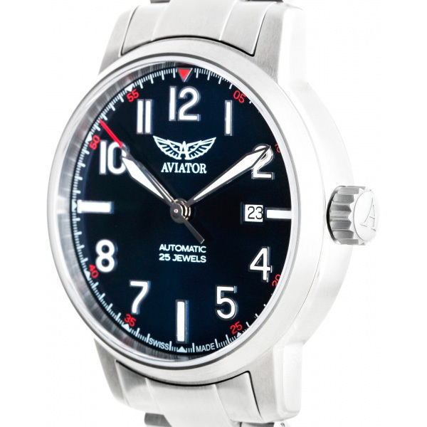 Корпус: Корпус круглой формы выполнен из матовой нержавеющей стали марки 316L. Циферблат синего цвета с шлифовкой “солнечные лучи”. Аппликация часовых индексов и печатная разметка в стиле авиационных приборов. Стрелки и часовые метки имеют светящееся в темноте люминесцентное покрытие SuperLuminova. Сапфировое стекло с двусторонним антибликовым покрытием имеет повышенную устойчивость к возникновению царапин. Переводная коронка с двойным уплотнителем для дополнительной защиты. Задняя крышка украшена гравировкой самолета. Диаметр 42 мм. Водозащита 100 метров.
