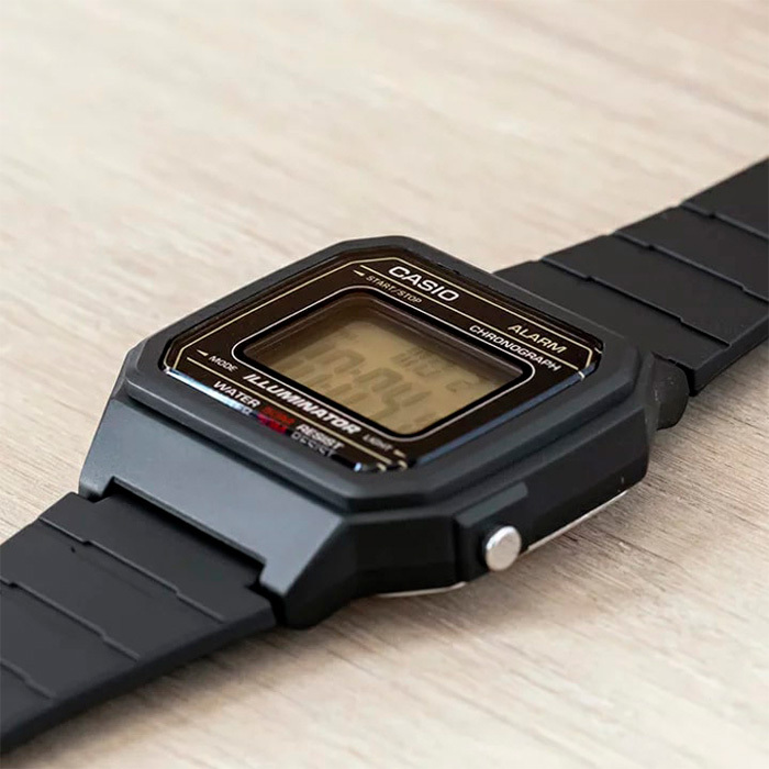 Корпус: Ударопрочный корпус часов сделан из высококачественного пластика чёрного цвета. Пластиковое стекло устойчивое к ударному воздействию. Размер корпуса (Ш x В x Г) 43,1мм x 41,2мм x 10,5мм. Водонепроницаемость: 50 м.