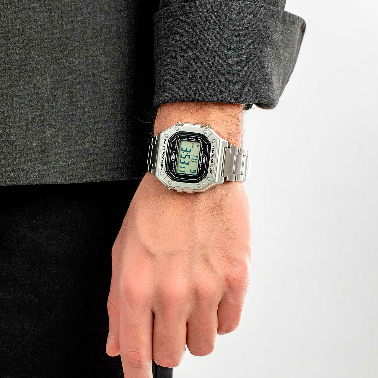 Корпус: Ударопрочный корпус часов сделан из высококачественного пластика с хромированным гальваническим покрытием. Пластиковое стекло устойчивое к ударному воздействию. Размер корпуса (Д × Ш × В) 44,4 × 43,2 × 10,8 мм. Водонепроницаемость: 50 м.