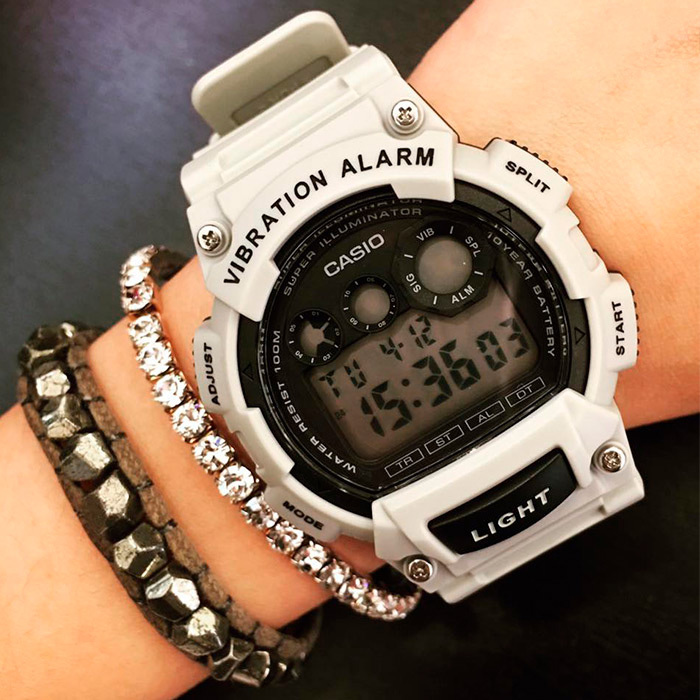 Функции: Электронный (цифровой) способ отображения времени. Циферблат подсвечивается светодиодом разных цветов. Секундомер с точностью показаний 1/100с и временем измерения 24ч. Сплит-хронограф. Таймер обратного отсчета от 1с до 24ч. Второй часовой пояс. 12-ти и 24-х часовой формат времени. Функция включения/отключения звука. Будильник, ежечасный сигнал. Световая и вибрационная индикация сигнала.