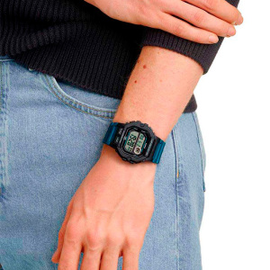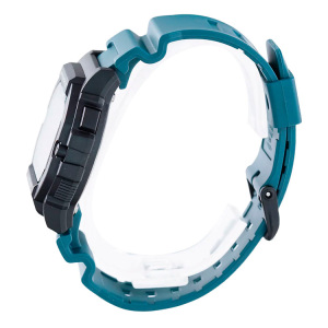 Корпус: Корпус из полимерного материала чёрного цвета. Циферблат серого цвета вокруг дисплея. Дисплей серого цвета, цифры чёрного. Акриловое стекло. Габаритные размеры: 44,5х47,2мм, толщина 13,4мм, вес 43г. Водозащита: 100 м.