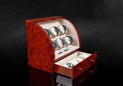 Designhütte представляет Watch Winder Basel 6 LCD - Burl Wood – стильную и технологичную шкатулку для подзавода часов, созданную для ценителей автоматических механизмов.