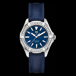 Новая женская модель от мануфактуры TAG Heuer в ярко выраженном спортивном и вместе с тем элегантном дизайне как нельзя лучше соответствует образу активных современных женщин. Диаметр корпуса 35 мм, водонепроницаемость до 300 метров. Часы Aquaracer из коллекции 2003 года постоянно эволюционируют, приобретая всё более спортивный характер. Вместе с тем сохраняют культовые элементы – такие как керамический, вращающийся в одном направлении безель с 12 фацетами и 6 полированными упорами.
