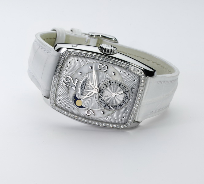 в которых грань между часовым делом и ювелирным искусством окончательно исчезла. Сквозь децентрализованные окошки просматривается часть искусно декорированного механизма AN704, собранного на базе раритетного калибра 1960 года - FHF 905. Частично скелетонированный циферблат подчеркивает техническое совершенство часов, а круглый корпус с круговой инкрустацией из бриллиантов - эстетическое совершенство.