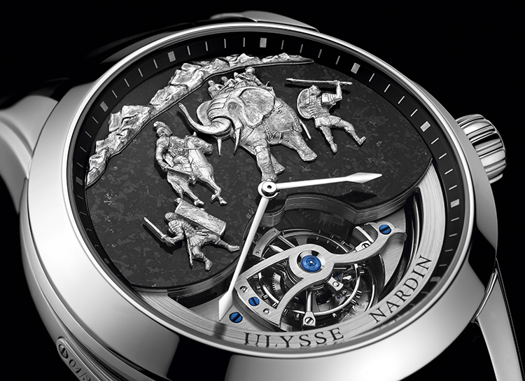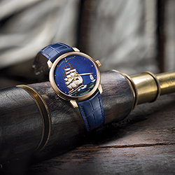 На циферблате новинки знаменитое судно изображено на фоне морского пейзажа. Еще одни сложные часы Hannibal посвящены легендарному переходу Ганнибала через Альпы на слонах.